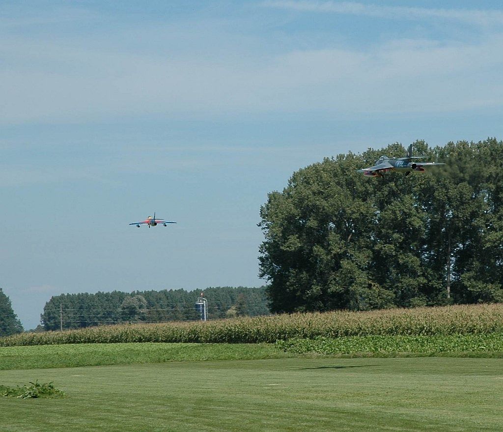 Ils furent nombreux à se rassembler dès 10 heures sur le terrain d’aviation pour assister à un meeting réglé comme du papier à musique et où il y en avait pour tous les goûts : avions d’acrobatie, vol captif, hélicoptères 3D, remorquage de planeurs, avions de course, avions de ligne, modèles assemblés à la perfection avec leur moteur et leur réacteur et autres sport jets. Les vols en formation surtout (Hunter, SU-27, Mirage 2000 ou AT-6) ont fait forte impression.