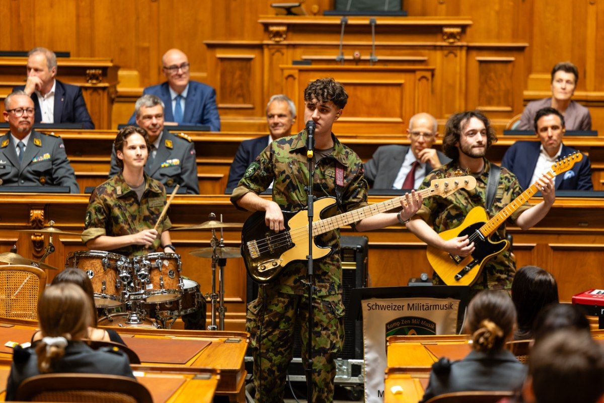 Auch die Direktorin des Bundesamtes für Sport BASPO, Sandra Felix wendete sich mit einer Rede an die Anwesenden. Dazwischen wurde der Anlass von einer 4-Köpfigen Band der Militärmusik durchaus rockig unterhalten.