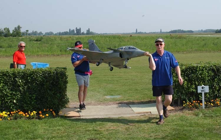 Es ist immer noch sehr heiss hier auf dem schönen Flugplatz, gut das ab und zu ein leichtes Windchen aufkommt und das einigermassen erträglicher macht. Heute flogen keine Schweizer Flugzeuge, dafür kamen alle noch mit ihren Flugzeugen an die Bauwertung. Man kann noch nicht’s genaues sagen, jedoch scheint es, dass die Punkte allgemein tiefer angesetzt sind als an den letzten Weltmeisterschaften. Die Resultate werden nach dem ersten Flugdurchgang veröffentlicht und da werden wir ja sehen... Die Stimmung im Schweizer Lager ist sehr gut, es läuft alles wie am Schnürchen und alle Flugzeuge sind fit für den ersten Flugdurchgang der morgen Nachmittag beginnt. Sämtliche Piloten hoffen bis ca. 15 Uhr fliegen zu können, weil später die Sonne so am Himmel steht, dass sie bei einigen Flugfiguren die Sicht stark behindern. Der amtierende Weltmeister Stefan Völker flog heute sein neues Modell, einen sehr grossen Hawk, mit Schweizer Bemalung. Bei einem schnellen Vorbeiflug ging in folge einer Überlastung das Servogetriebe zu bruch, was kurz danach zu einem extremen Seitenruderflattern führte! Dank dem Können des Piloten und viel Glück konnte das Modell ohne weitere Beschädigung gelandet werden. Nach der Reparatur wurde der Hawk nachgewogen und kam auf 19.99kg, da ist nicht mehr viel Reserve, da hilft nur noch trocken lagern...